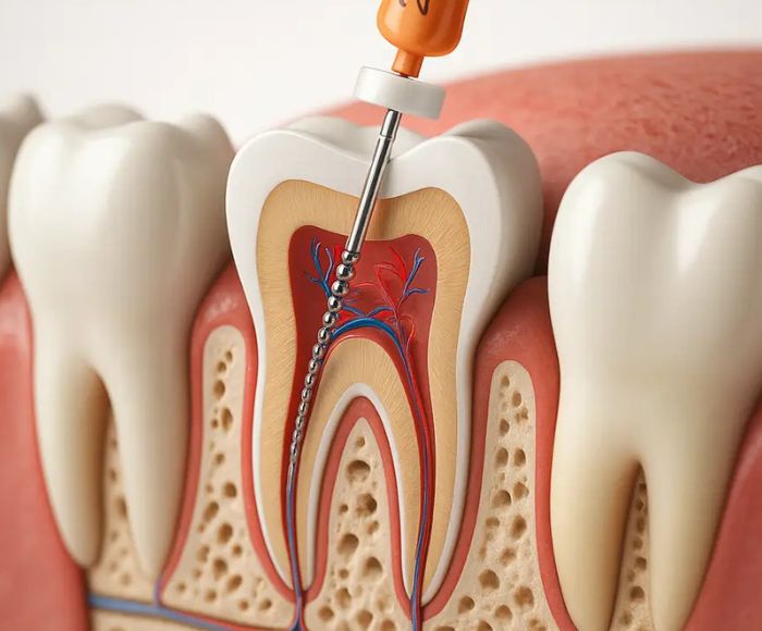 A root canal treatment is a dental procedure that treats infected or damaged tooth pulp. When the inner tissue of your tooth becomes infected due to decay, cracks, or injury, it can cause severe pain and swelling. Root canal therapy removes the infected tissue, cleans the tooth thoroughly, and seals it to prevent future infection—saving your natural tooth and restoring its function.